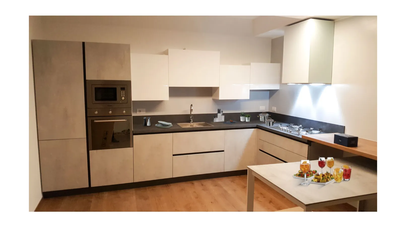 Cucina Stosa infinity angolare con penisola realizzata per appartamento a Monza centro