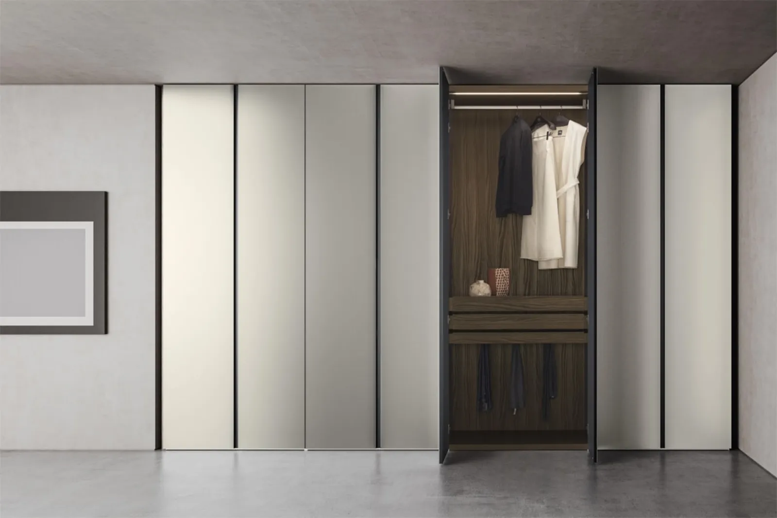 Gli Armadi e le cabine armadio con ante battenti devono ammobiliare la camera assicurandoti una perfetta ottimizzazione degli spazi e un'esclusiva ricerca stilistica. La camera da letto è dedicata al riposo, deve dunque risultare ammobiliata al meglio e completa di mobili ed elementi accessori in grado di creare un'ambientazione sempre distensiva. Per ultimare al meglio il concept d'arredo, opta per le nostre proposte di Arredamento Casa dei migliori brand, letti, armadi e comodini differenti per eleganza, dimensione e materiale. Armadio con ante battenti Nastro di Pianca: compila il form, contattaci e dai vita alla stanza del relax come l'avevi sognata. Contattaci per informazioni e preventivi e potrai ultimare la camera da letto che hai sempre sognato grazie ad una ricca varietà di mobili contenitori design come questo guardaroba in vetro nella fotografia.