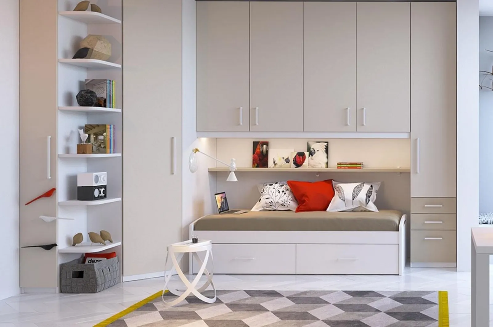 Se cerchi spunti creativi per decorare ottimamente la stanza dei tuoi bambini, ti proponiamo la Cameretta a ponte Giulia di Imamobili con finitura in melaminico. Imamobili offre un ricco catalogo di elementi accessori da accostare su misura: troverai letto, armadio o cabina armadio, tavolo da lavoro, sedie e librerie. Porta estetica e colori vivaci nella stanza dedicata ai più giovani con questa proposta, una tra le Camerette a ponte per ragazzi di Imamobili. Questa soluzione in melaminico ultima ottimamente le doti di praticità e l'estetica della camaretta, in quanto è capace di abbinare ergonomia e sicurezza. Nell'arredamento della stanza dei giovani affidati a noi: nel nostro showroom proponiamo tutte le più belle composizioni moderne per la loro camera.