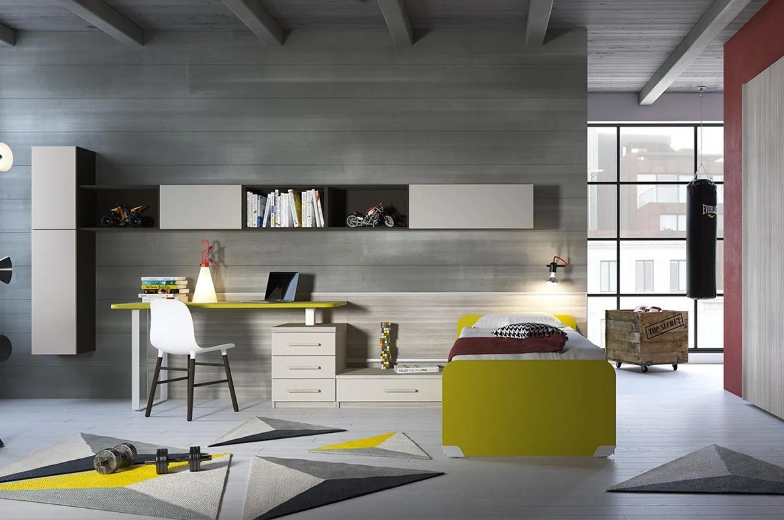 Questa soluzione in melaminico ultima al meglio le doti di praticità e l'estetica della camaretta, poiché è capace di coniugare ergonomia e sicurezza. Nell'arredamento della stanza dei giovani affidati a noi: nel nostro showroom presentiamo tutte le più originali composizioni moderne per la loro camera. Imamobili offre un ricco catalogo di accessori da abbinare su misura: troverai letto, armadio, tavolo da lavoro, sedie e librerie. Se cerchi idee creative per arredare al meglio la stanza dei tuoi bambini, ti presentiamo la Cameretta componibile Marco di Imamobili con finitura in melaminico. Porta design e colori vivaci nella stanza dedicata ai più piccoli con questa proposta, una delle Camerette componibili per ragazzi di Imamobili.
