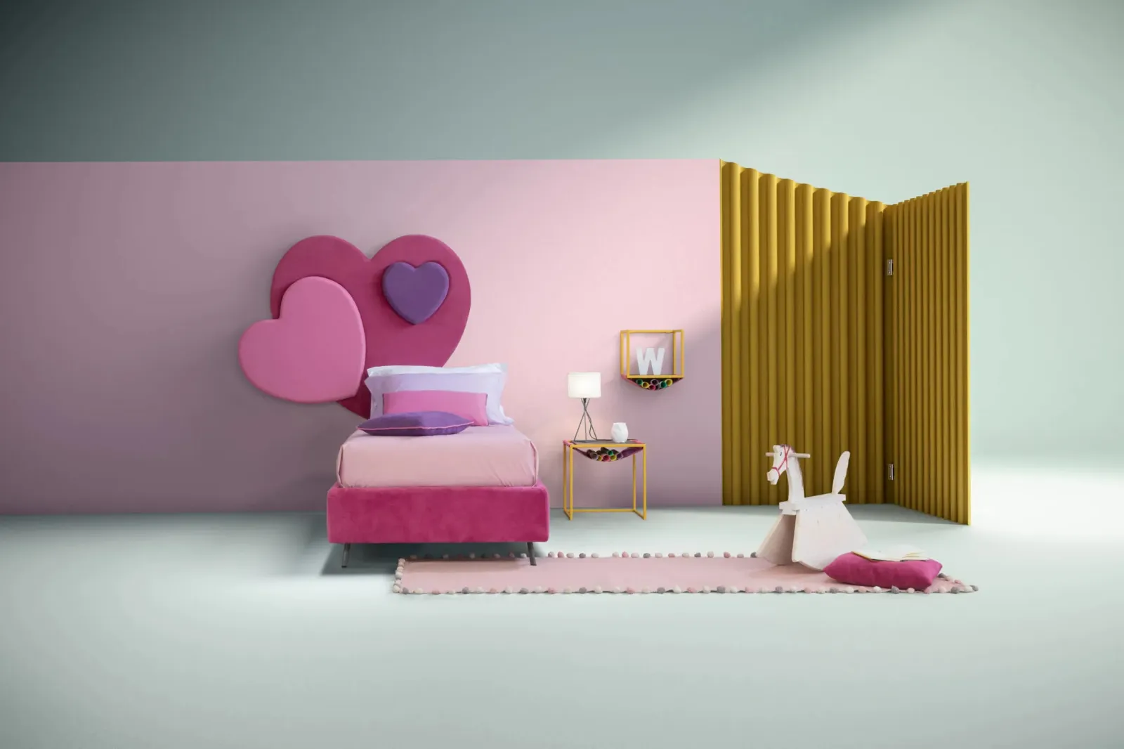 La cameretta dei più piccoli include ogni pezzo di arredo per assicurare un luogo confortevole, in cui trovano posto i letti moderni come questo. Una soluzione che rispetta le norme di sicurezza indispensabili per progettare lo spazio junior. Scopri di più sul modello in tessuto nell'immagine: contattaci per qualsiasi informazione compilando il form qui sotto. Ti serve un letto singolo Bside per ultimare la stanza dei più piccoli? Eccoti il Letto singolo Sweet di Bside che fa parte della nostra serie di letti imbottiti della firma.