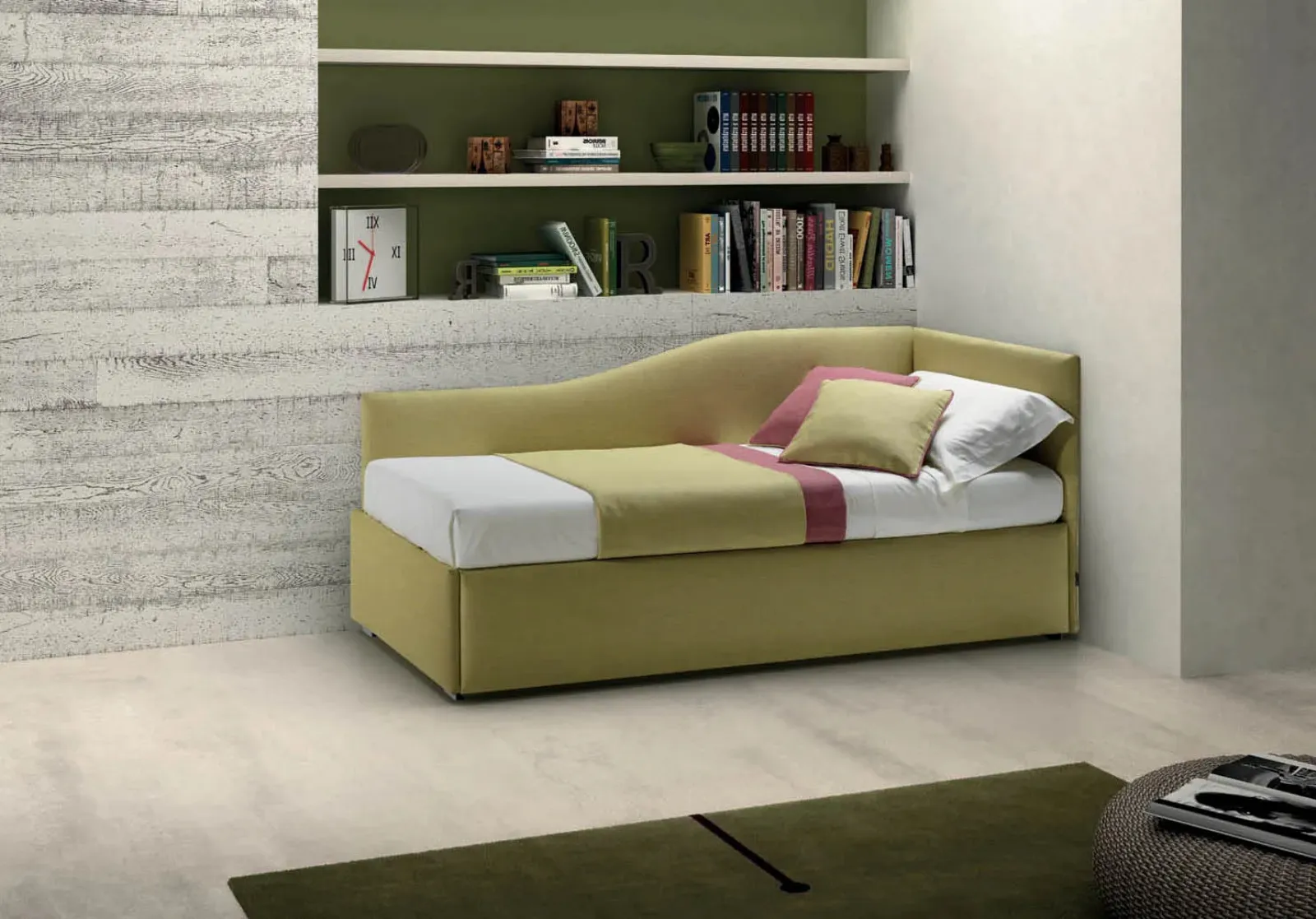 La cameretta dei bimbi include tutto il necessario per garantire un ambiente confortevole, in cui sono presenti i letti moderni come questo. Una soluzione che osserva le direttive di sicurezza necessarie per organizzare il regno dei giovani. Ottieni informazioni sul modello in tessuto nella fotografia: contattaci per qualsiasi informazione compilando il form in basso. Cerchi un letto singolo Bside per ultimare la cameretta? Ecco qui il Letto con testiera Twice Angolo Sagomato di Bside che è appartenente alla nostra serie di letti imbottiti della marca.