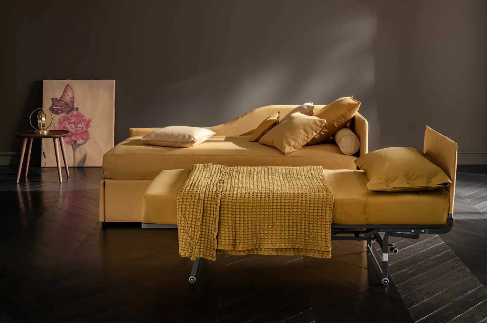 Ottieni informazioni sul modello in tessuto nell'immagine: contattaci per qualsiasi informazione compilando il form in basso. Cerchi un letto singolo Altrenotti per completare la camera dei più piccoli? Ti presentiamo il Letto singolo in tessuto Soul Young Teddy angolare destro di Altrenotti che è appartenente alla nostra serie di letti con letto estraibile del brand. Una soluzione che rispetta le norme di sicurezza indispensabili per arredare l'ambiente dei piccoli. La cameretta dei bambini è necessario che preveda tutto il necessario per garantire uno spazio ideale per i bambini, in cui convivono i letti moderni come questo.