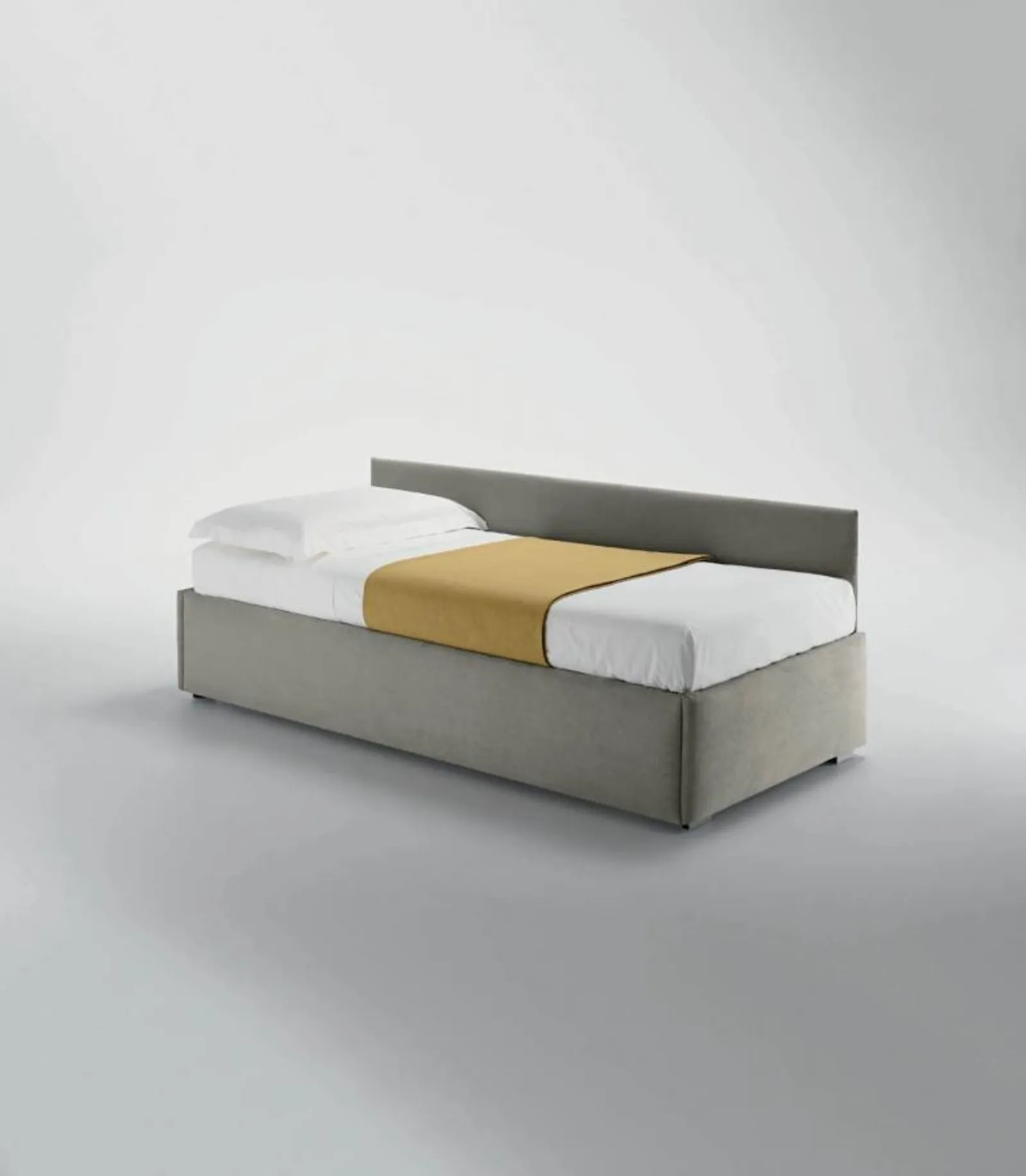 Il Divano letto singolo Twice-Centrale-Basso di Bside in foto è ideale per ultimare perfettamente la cameretta dei tuoi figli, abbinandosi alla perfezione con armadi e comodini, elementi accessori e quant'altro. Contattaci e scopri di più sulla nostra linea di Letti singoli in tessuto: arreda la stanza dei più piccoli come l'avevi immaginata. Se desideri mobili e complementi moderni, il letto singolo in foto fa per te: #appartiene alla@# nostra linea di letti singoli imbottiti. Questo è uno dei prodotti più inediti del brand Bside, sinonimo di durata negli anni, qualità delle finiture e uno stile unico.