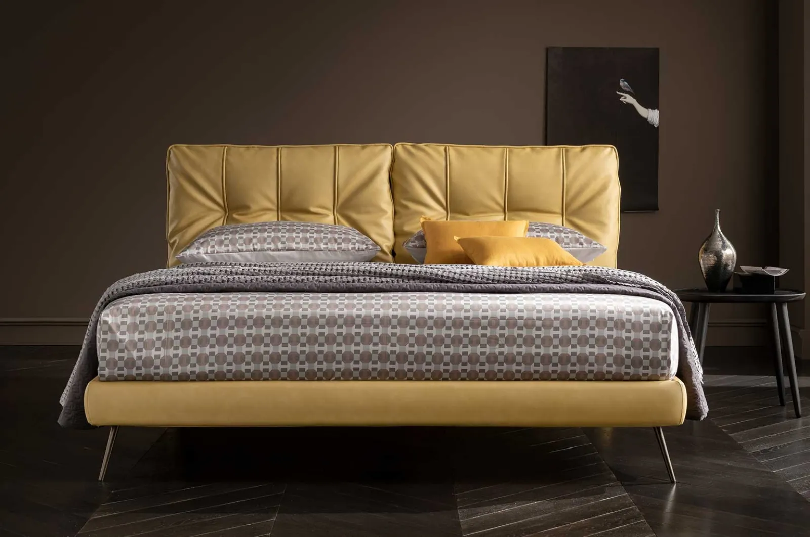 Scopri in negozio una ricca gamma di Letti imbottiti, mobili e oggetti accessori per la zona del riposo dei migliori produttori. Con il Letto Soul Salina in pelle imbottita di Altrenotti del noto e rinomato marchio, specialista del settore, potrai impreziosire la tua zona notte assicurandoti comodità, funzionalità e un design pulito. Se vuoi ammobiliare spazi design, ti aspettiamo per farti vedere la nostra linea di Arredamento Casa per realizzare il tuo progetto su misura. Se vuoi creare un'atmosfera intima e rasserenante, il modello visibile in foto fa per te: nella stanza del relax dovrai creare un'atmosfera rasserenante, per farti ritemprare le energie psicofisiche come meritate. Durevolezza dei materiali e grande comfort sono gli aspetti che connotano tutti i prodotti del marchio, tra cui anche il letto in pelle nell'immagine.