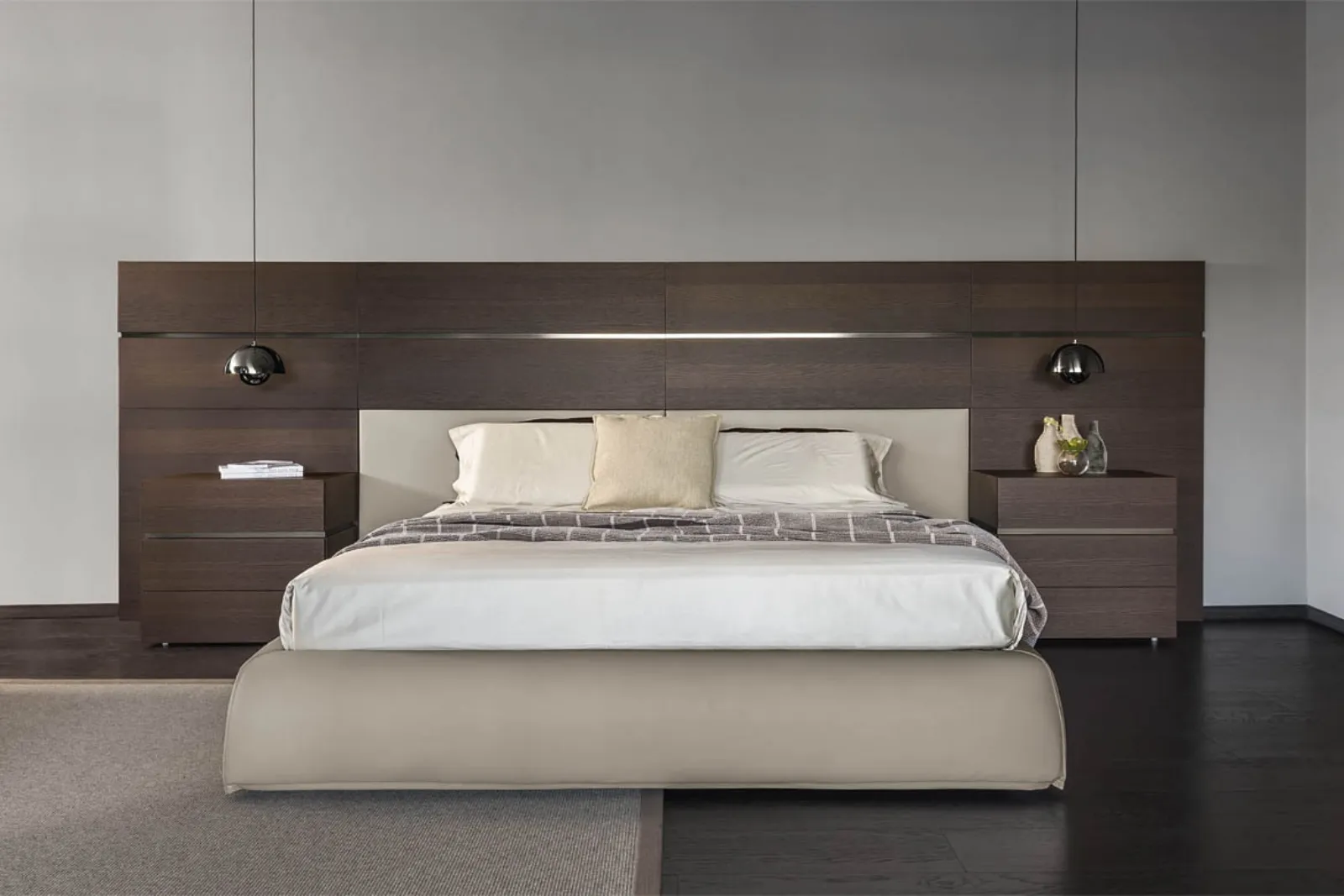 La camera è il luogo di casa che più interpreta la personalità di chi la usa, locale in assoluto dedicato al relax, alla distensione e alla privacy. Se vuoi assicurarti l'agio più totale nei tuoi momenti di relax, scegli i Letti matrimoniali moderni in pelle come il modello mostrato in foto. Scopri un ricco catalogo di letti sommier dei migliori produttori di Arredamento Casa disponibili nel nostro showroom e valorizza la tua camera. Il Letto Sommier in pelle con Boiserie in Legno di Pianca è una tra le più esclusive soluzioni del marchio, specialista del riposo, capace di garantire praticità, comodità e uno stile unico. Nel nostro sito potrai trovare le proposte più valide dei migliori produttori specializzati nell'arredo per la zona del riposo, con un’ampia possibilità di personalizzazione in quanto a tonalità e abbinamenti, accessori e tanto altro.