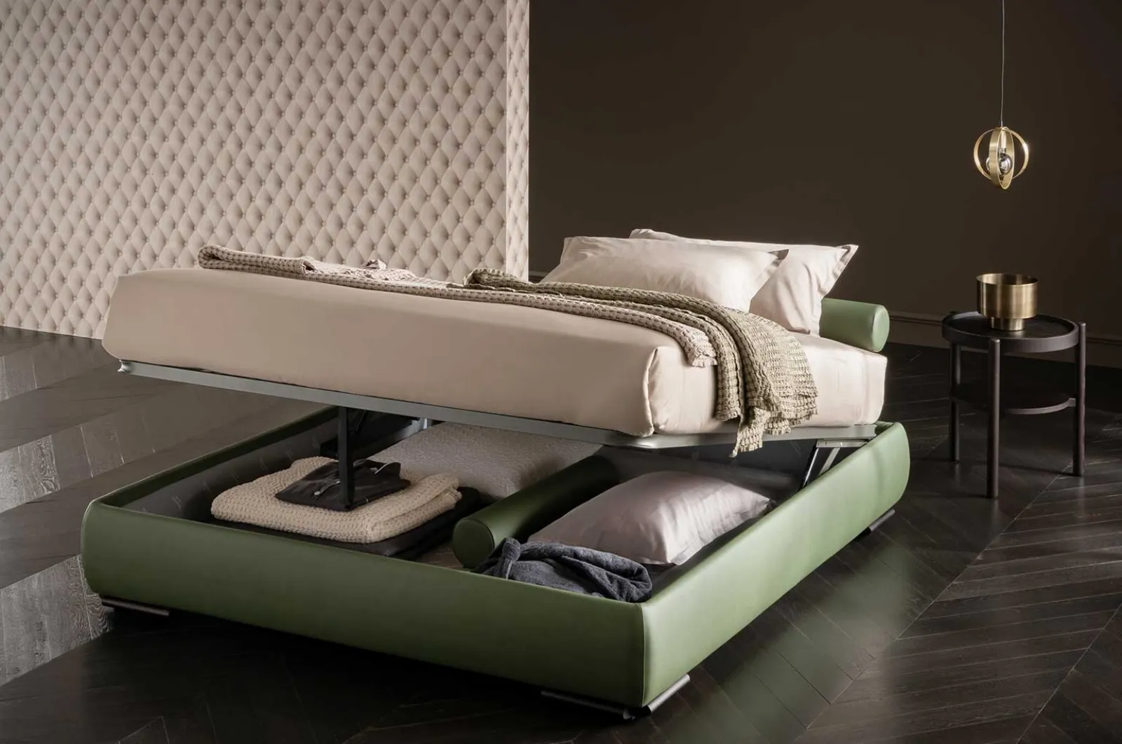 I Letti matrimoniali con contenitore dell'azienda, specialista nella realizzazione di Arredamento Casa per la zona notte, sono progettati per essere abbinati a mobili ed elementi accessori di ogni genere, come armadi e comò, lampade e piantane. Il Letto Soul Sommier con contenitore di Altrenotti crea uno spazio accogliente e confortevole in ogni camera da letto, assicurandoti il relax totale e un design unico. Scegli cromie e texture e realizza il tuo concept d’arredo nella camera da letto, progettandola proprio come l'hai sempre immaginata. Se desideri una soluzione in pelle, il modello mostrato in foto è caratterizzato da materiali di qualità e forme decise, che invitano a trascorrere un riposo tranquillo e ristoratore. Durante la scelta di un buon modello di letto, valuta con cura le sue dimensioni, i materiali, la forma e il suo stile rispetto al resto degli arredi.