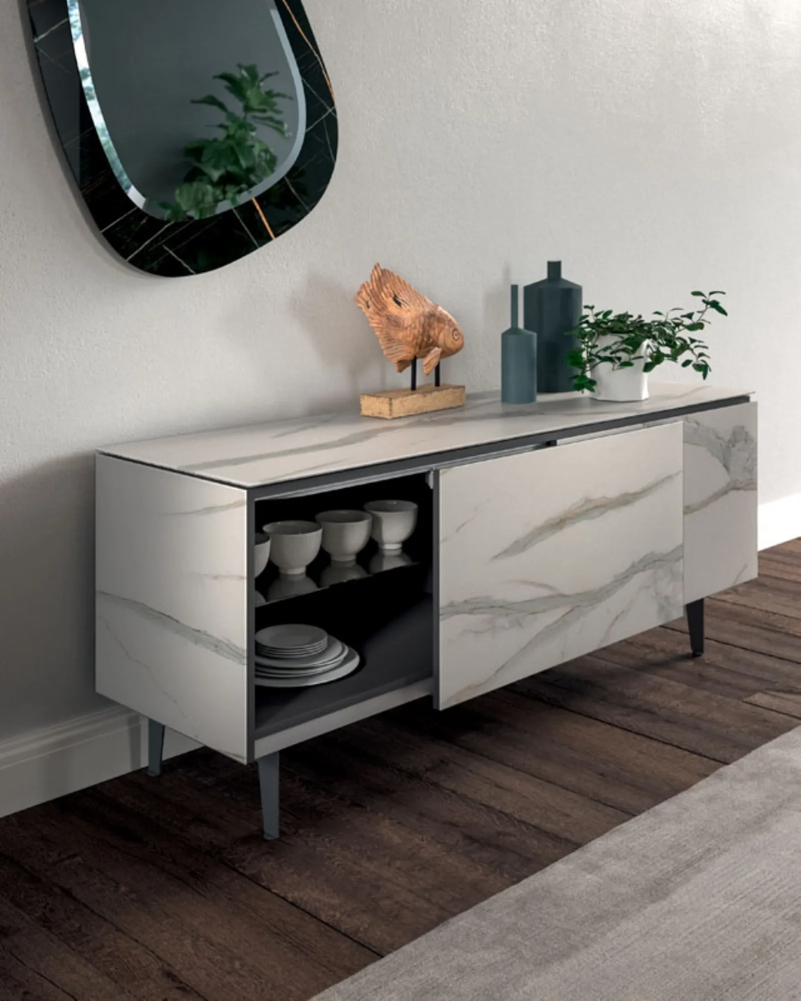 La Madia moderna Plana di Ozzio nell'immagine in vetro risolve le più particolari necessità di spazio e stile, arredando il living con praticità e un design unico. Anche in un living abbastanza piccolo, questi mobili soggiorno riescono a risolvere varie esigenze abitative assicurando varie possibilità di caratterizzazione su misura. Se quello che cerchi è un modello di mobile soggiorno salvaspazio, scopri in negozio un ricco catalogo di Arredamento Casa dei migliori produttori e contattaci per info e preventivi. Se sei un appassionato di arredamento e sei sempre aggiornato riguardo l'evoluzione del design nel campo, il nostro negozio è il posto perfetto per te. Le Madie moderne, tra cui il modello mostrato in foto, rendono belli il living o la sala da pranzo grazie a design unico e grandi doti di contenitività.