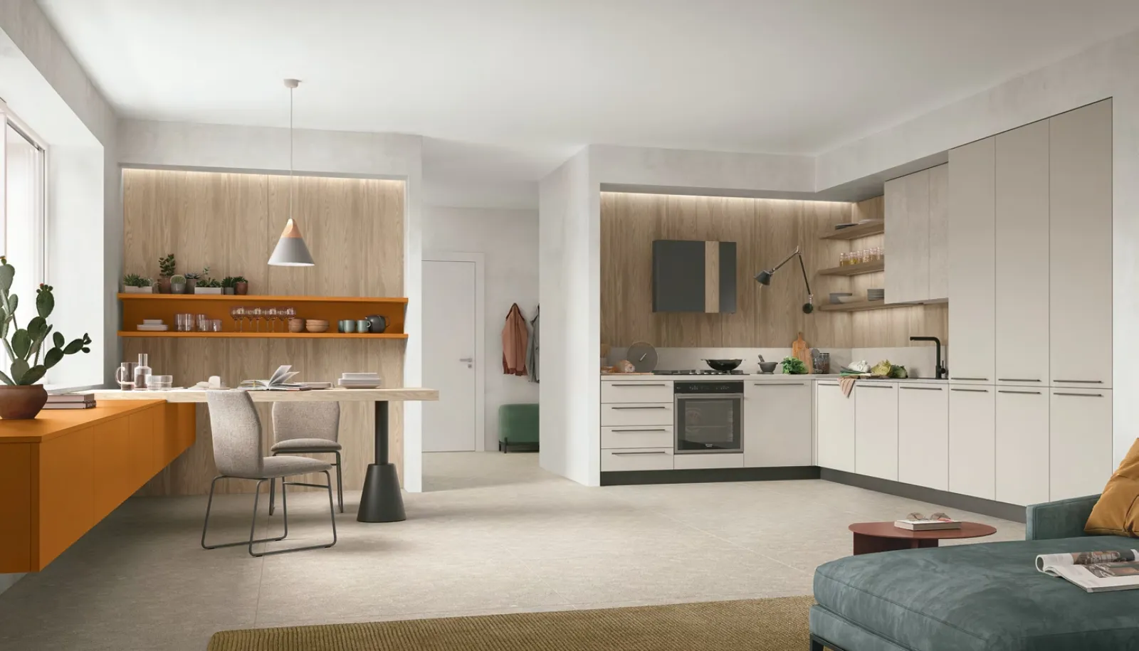 Se sei un amante delle composizioni moderne e non rinunci alla qualità assicurata dal noto e rinomato brand, allora il nostro centro espositivo è il luogo ideale. Scegli la cucina che fa per te tra le differenti soluzioni ad angolo disponibili sul mercato: potrai arredare gli spazi impreziosendoli. Il modello in laminato in foto, si può declinare in molteplici assetti, tonalità e finiture di grande valore decorativo per lasciarti interpretare gli spazi con razionalità, assicurandoti la praticità e contenitività di cui hai necessità.