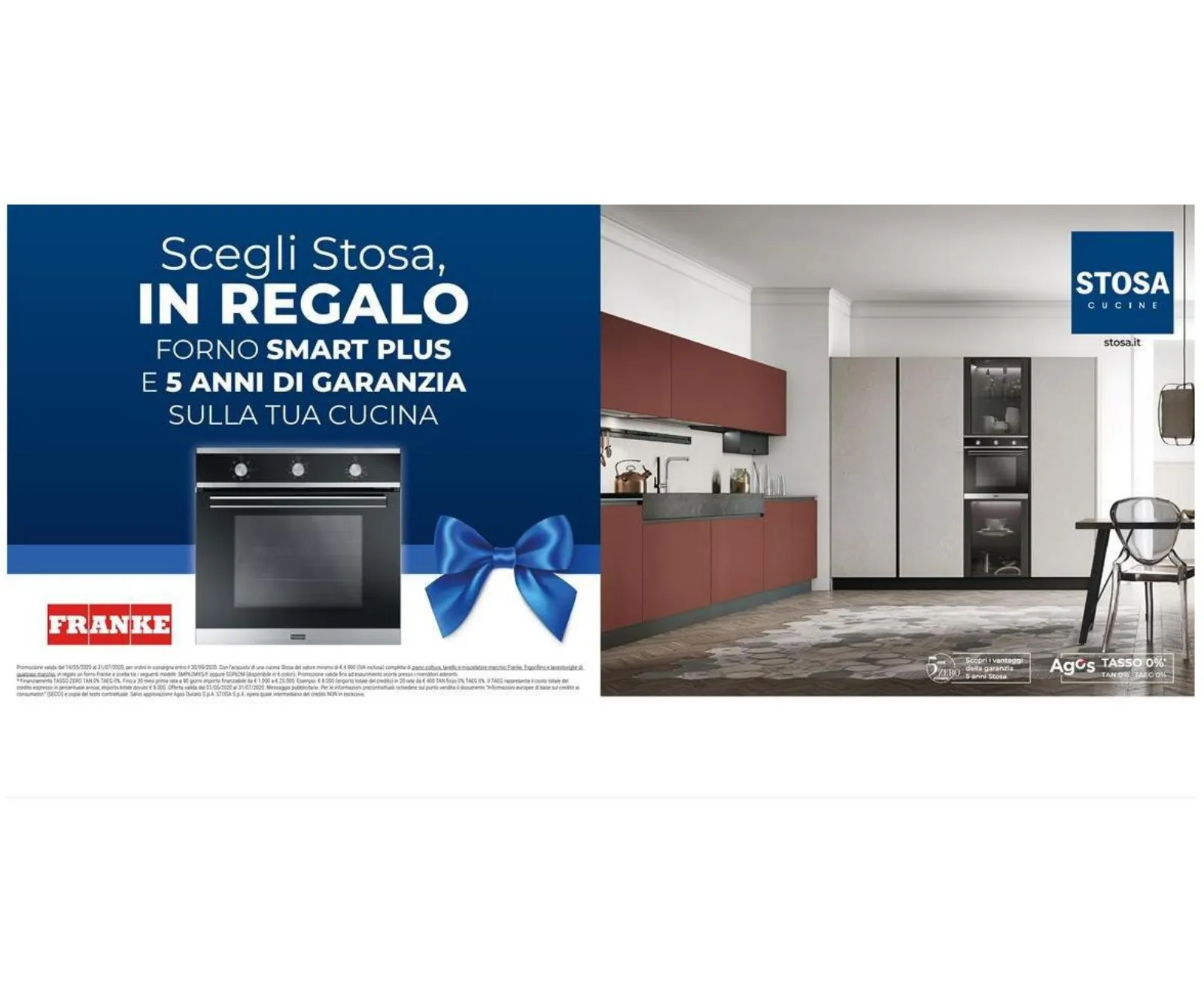 Con una cucina STOSA dal valore minimo € 4.900 (listino) iva inclusa, completa di piano cottura, lavello e miscelatore marchio Franke, frigorifero e lavastoviglie di qualsiasi marchio, IN OMAGGIO forno Franke a scelta tra i seguenti modelli SMP62MXS/F, SGP62M